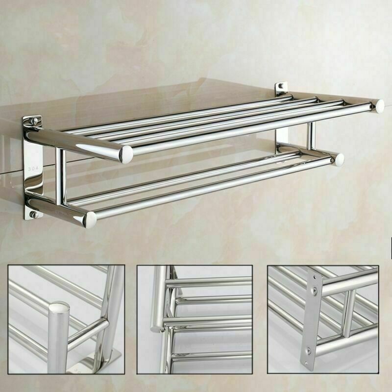 Dual row bathroom towel shelf rail rack(wall mounted)