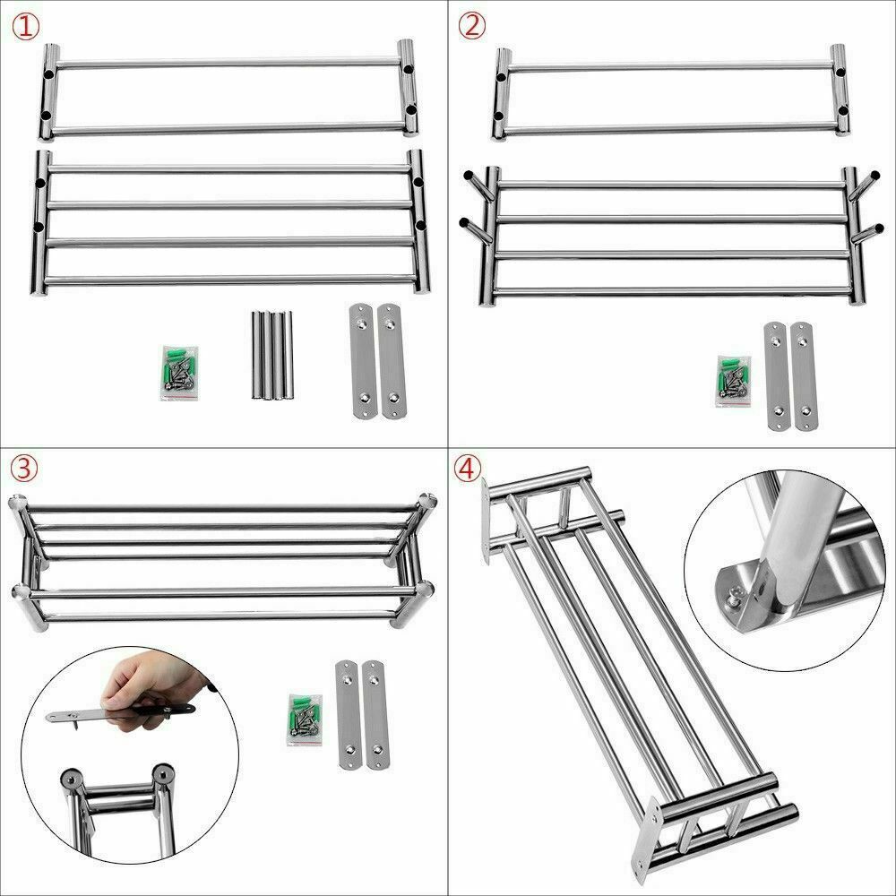 60CM Large Double Chrome Towel Rail Holder Wall Mounted Bathroom Rack Shelf