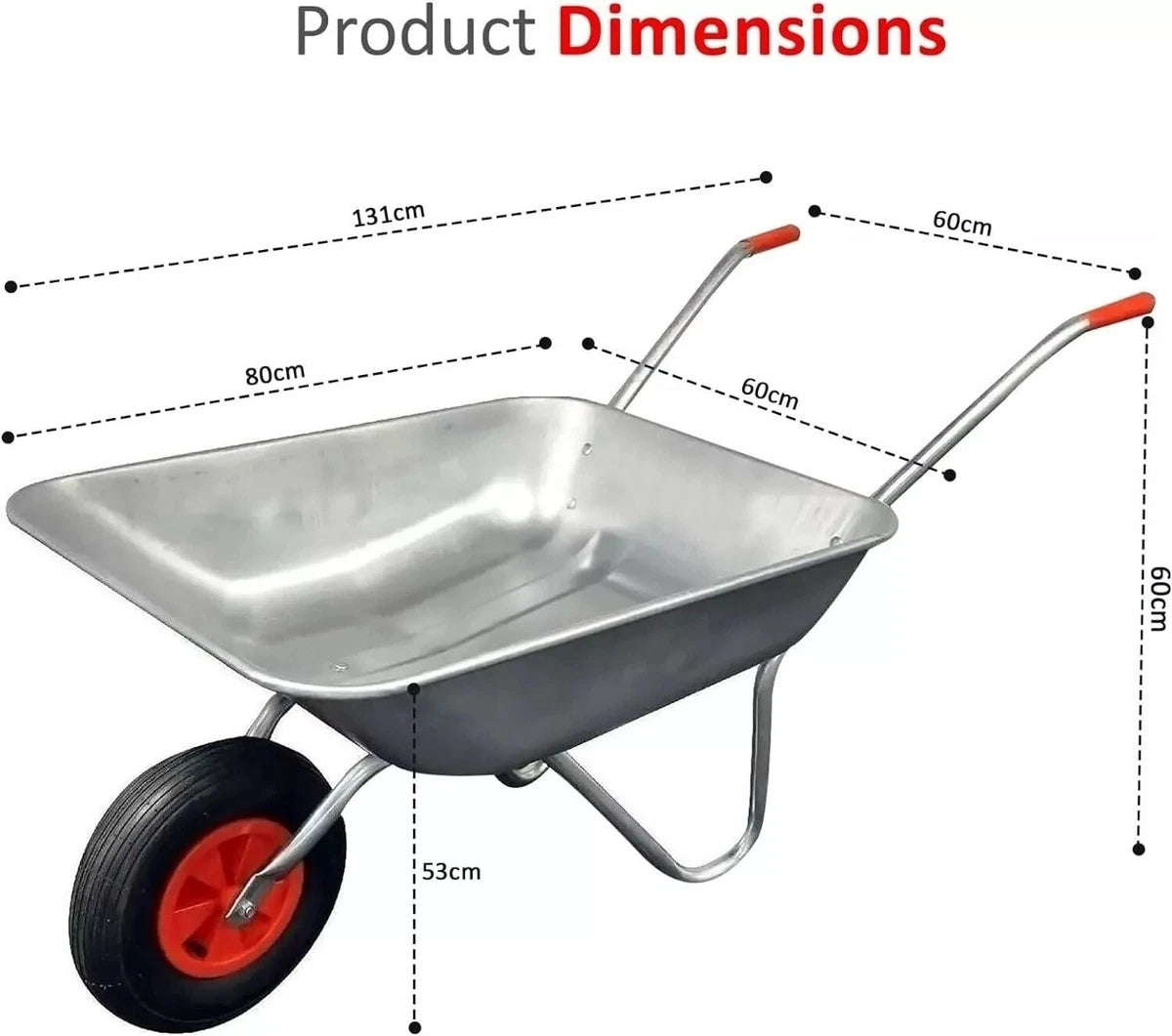 65L Wheelbarrow Heavy Duty Galvanised Home Garden Metal Cart with Pneumatic Tyre