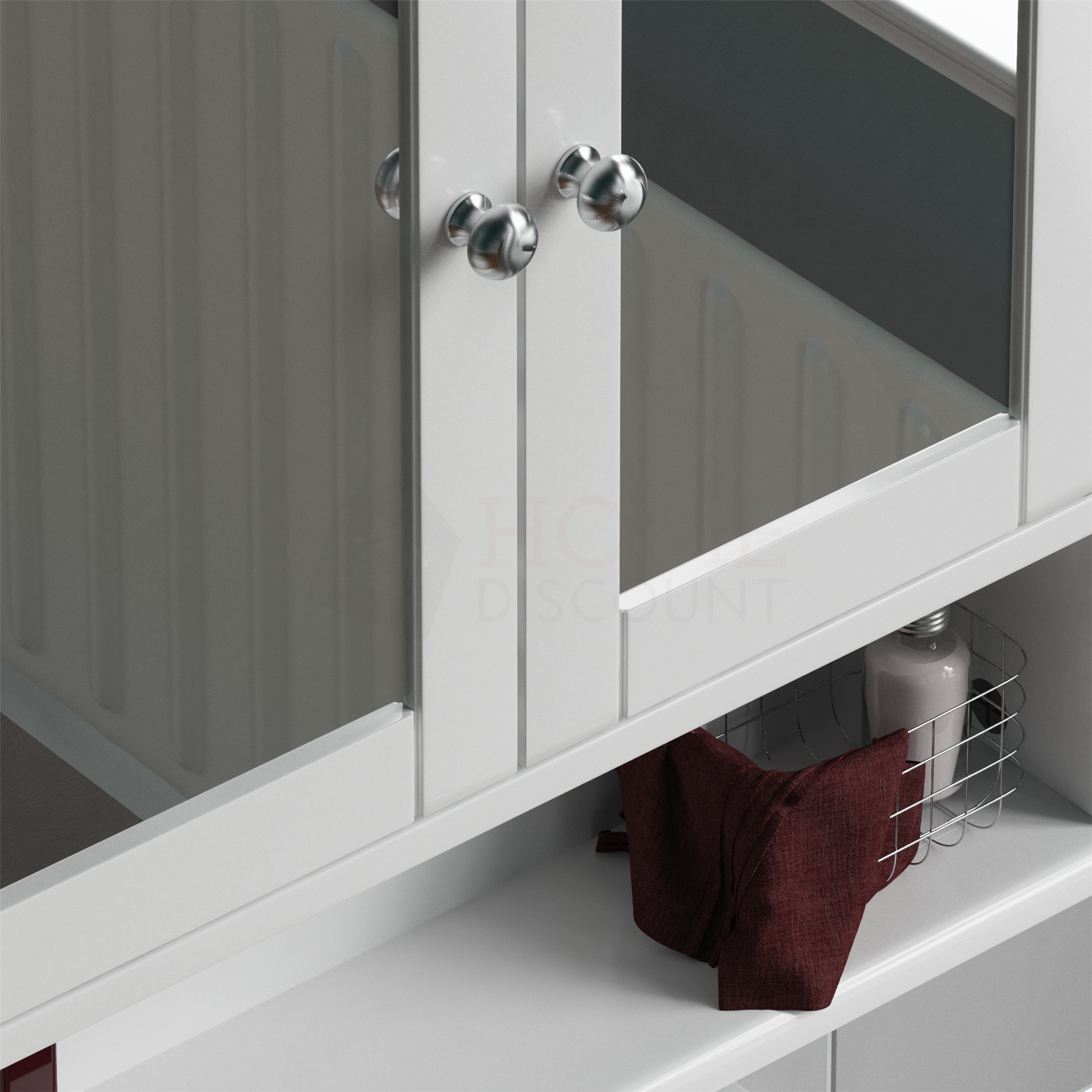 Built to Last: Sturdy composite wood construction in an attractive tongue-and-groove style with a contemporary White/Grey-painted finish and silver-colored handles. Mirrored doors make it perfect for putting your makeup on and getting ready in the morning.