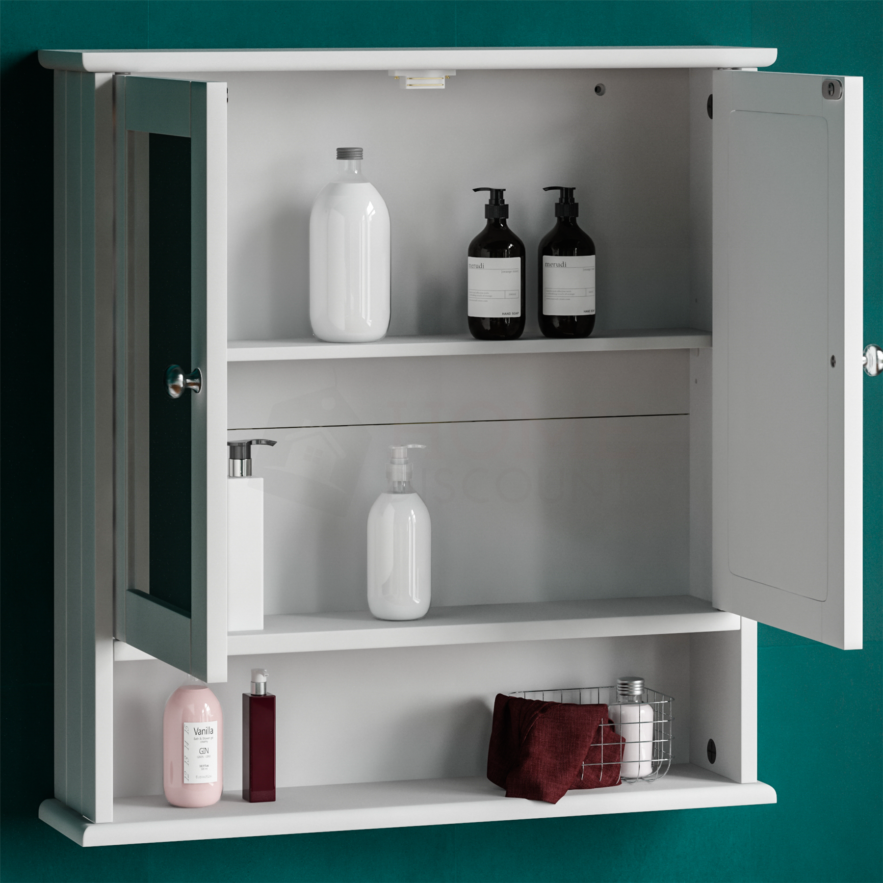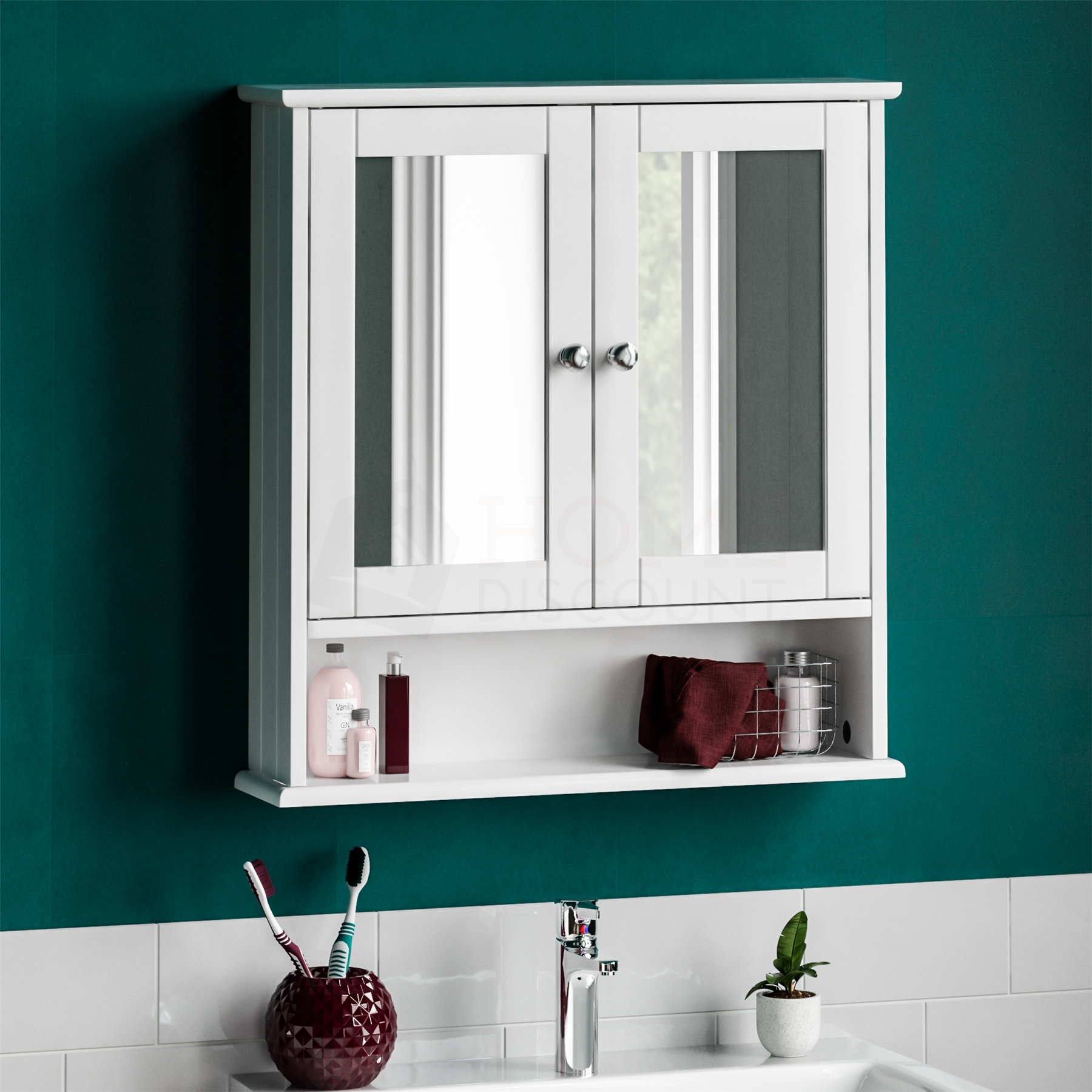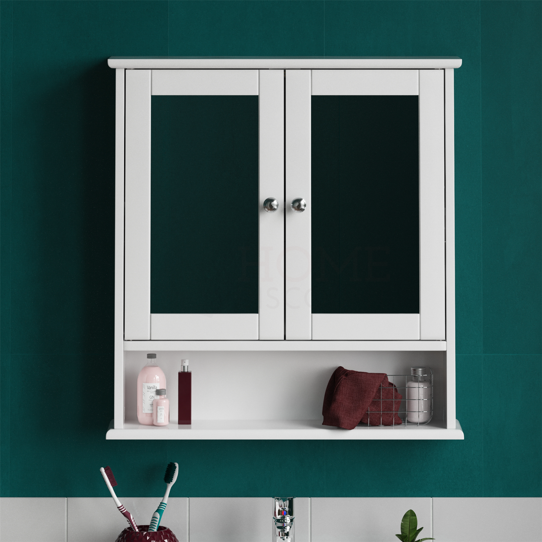 Bathroom Wall Cabinet Storage 2 Door Mirrored Cupboard MDF Shelves Vanity Unit