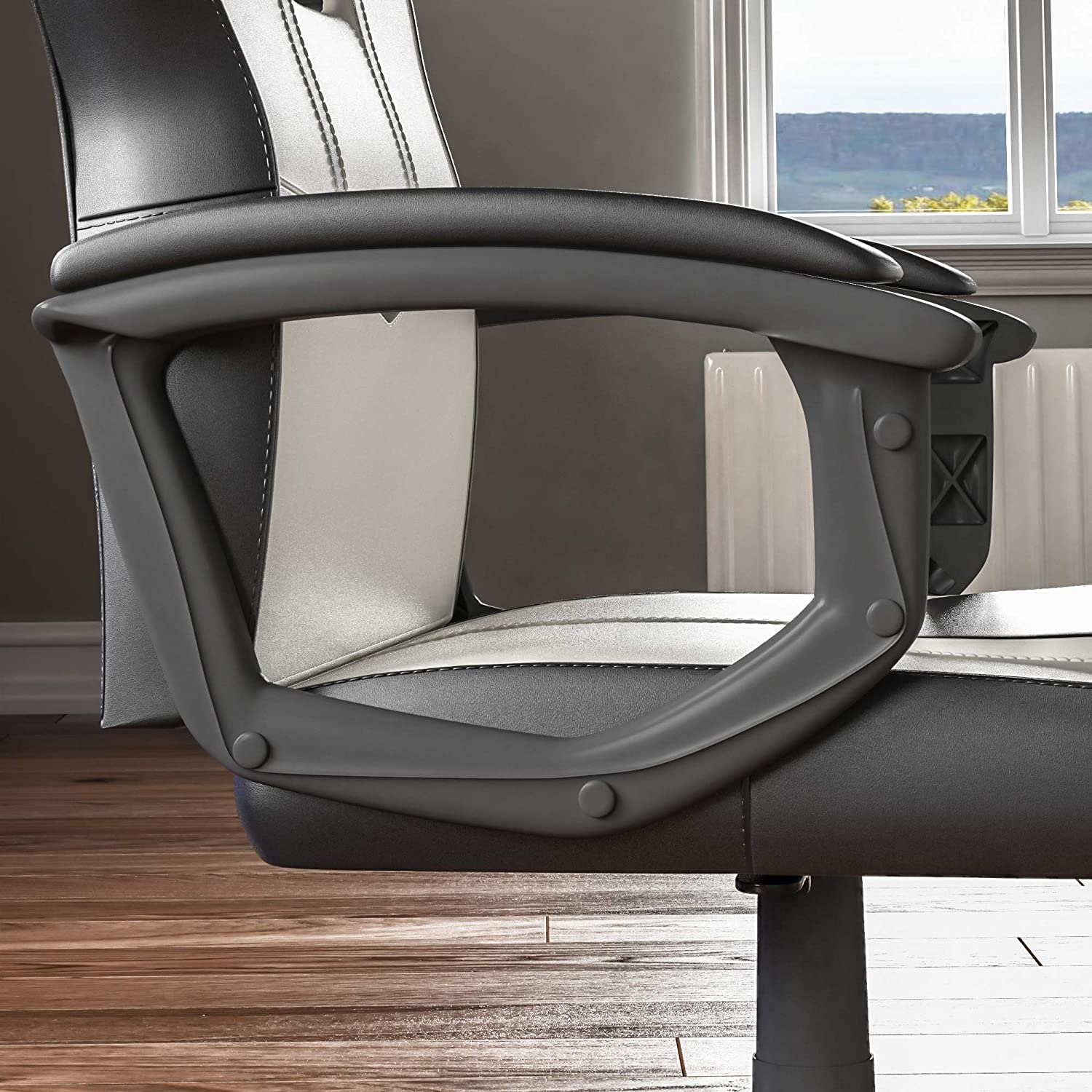 Computer Chair, White & Black, Office Executive Adjustable Swivel Recliner PU Faux-Leather