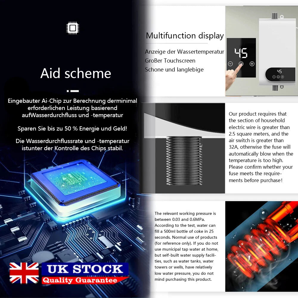 Electric Tankless Instant Water Heater Shower Head Kitchen Under Sink Bathroom