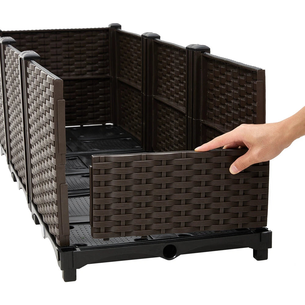 ✔【Durable Outdoor Growth Box】Our elevated planter boxes are made of reinforced PP material with a rattan pattern that is durable, lightweight, high load bearing, washable and reusable.