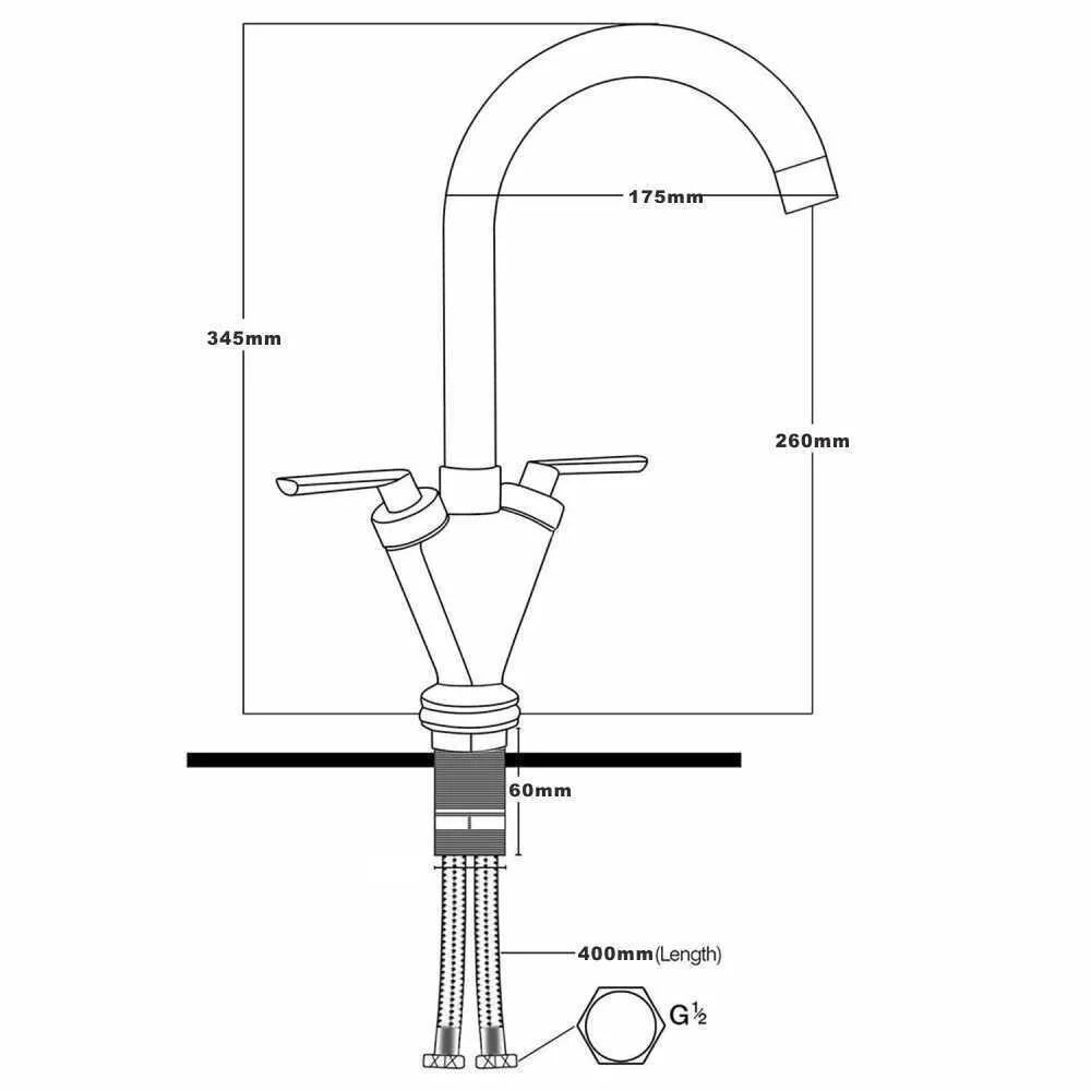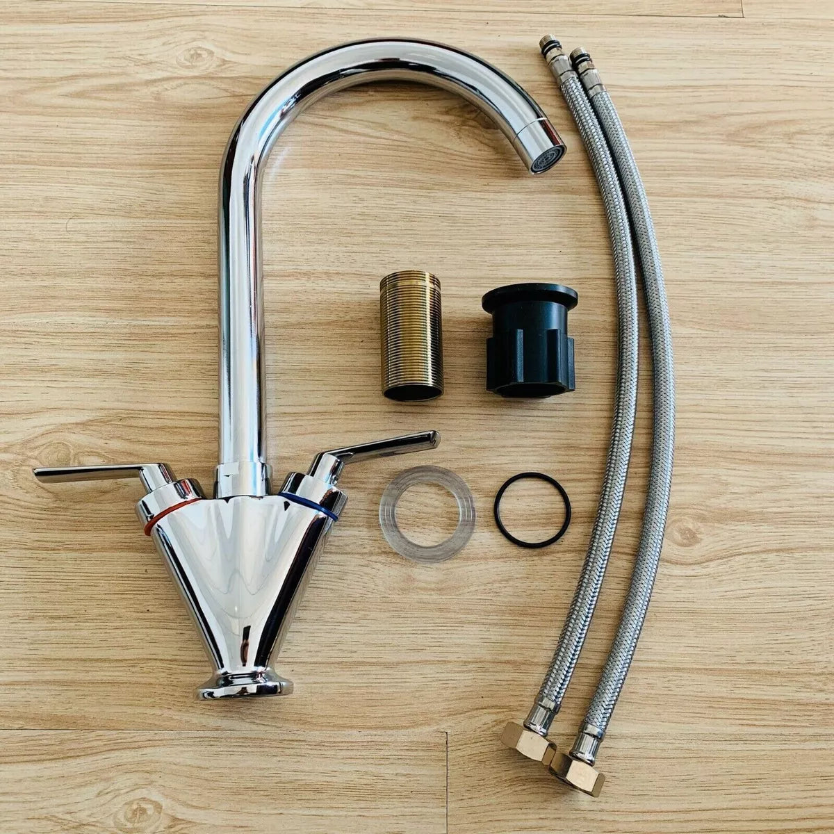 Modern Kitchen Mixer Tap Dual Lever Swivel Spout Mono Chrome Sink Taps Faucet
