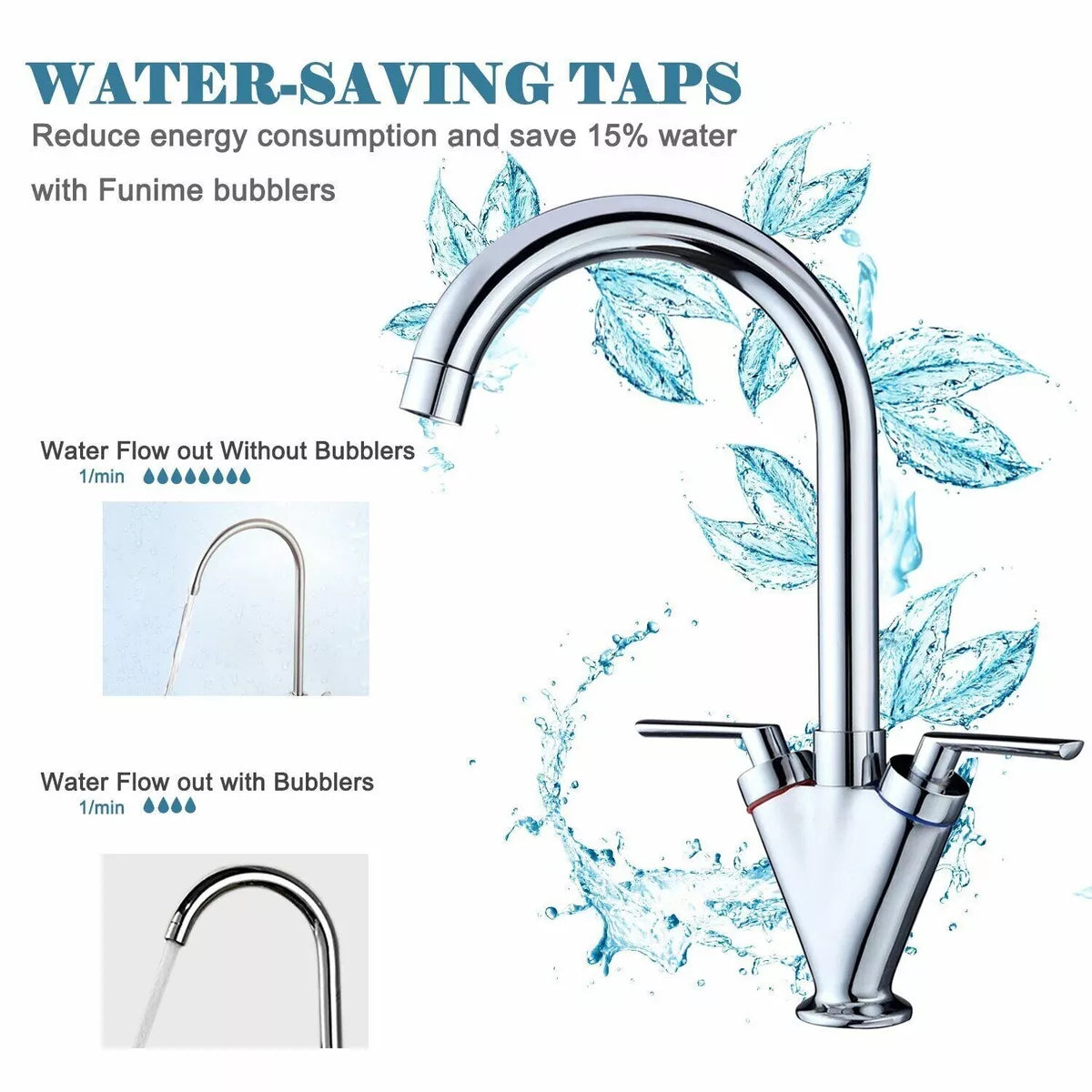 6Kitchen Sink Mixer Basin Tap Twin Dual Lever Taps Swivel Chrome Waterfall Faucet
