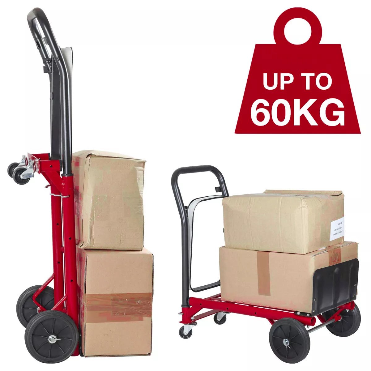 STRONG AND HEAVY DUTY β This Robust Sack truck is made from steel, decorated in black and red, the perfect tool to move heavy/large objects safely.