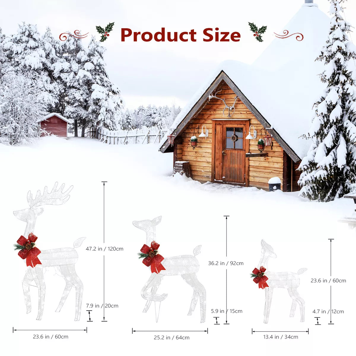 Set of 3 Light Up Reindeer Family Outdoor Christmas Decoration White Wire LED UK