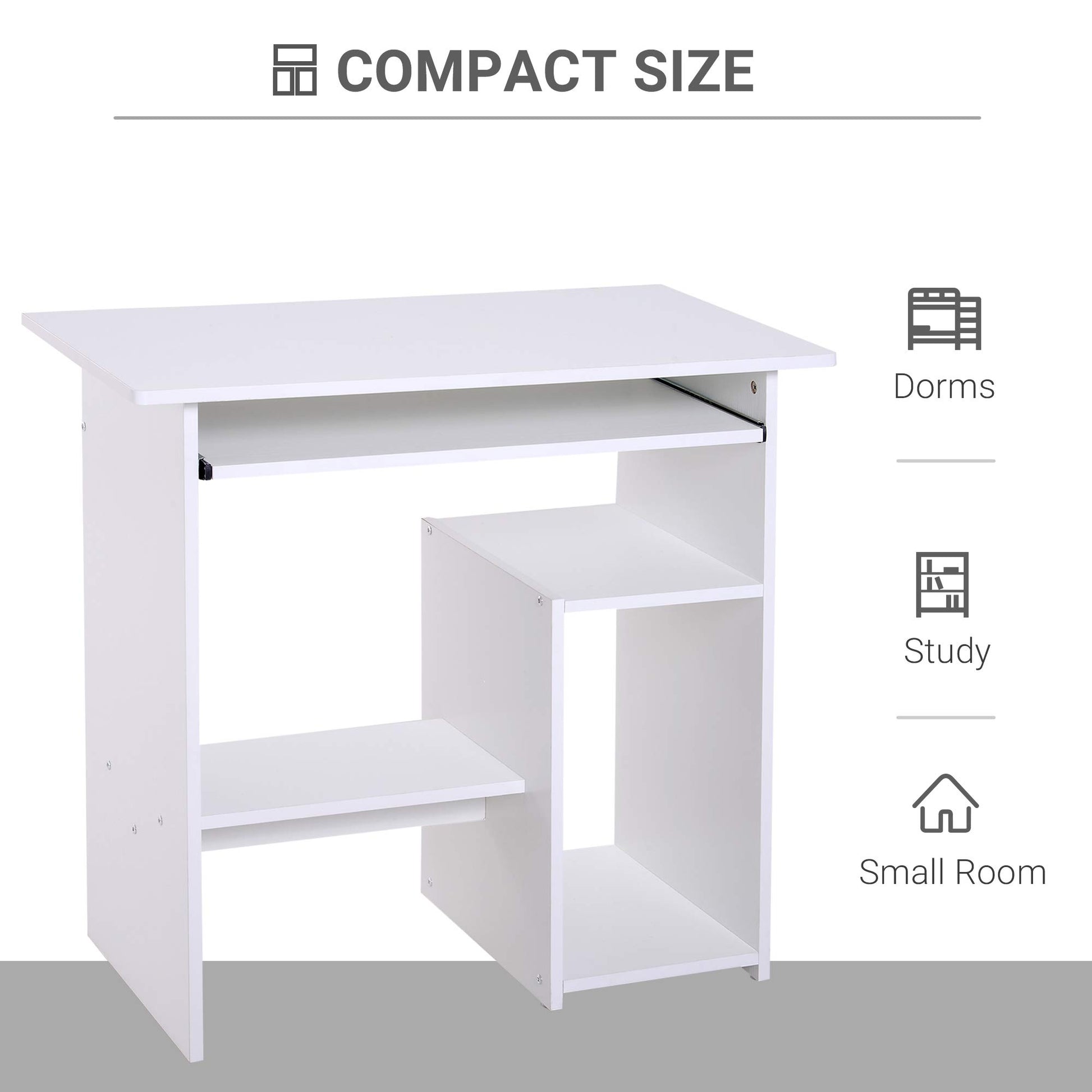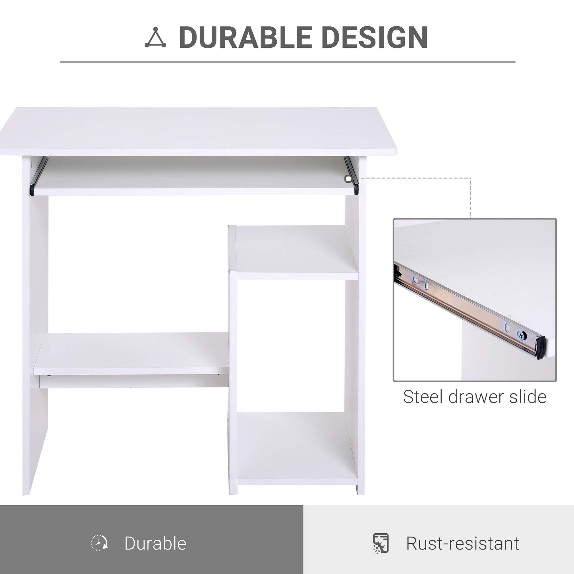 Wooden Desk Keyboard Tray Storage Shelf Modern Corner Table Home Office White